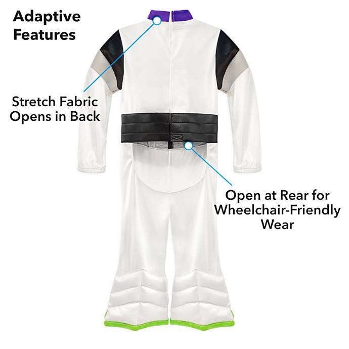There is also an option for a Buzz Lightyear adaptive kids’ costume for kids ($49.99), though there doesn’t appear to be a wheelchair cover to accompany this costume like the other two options above.