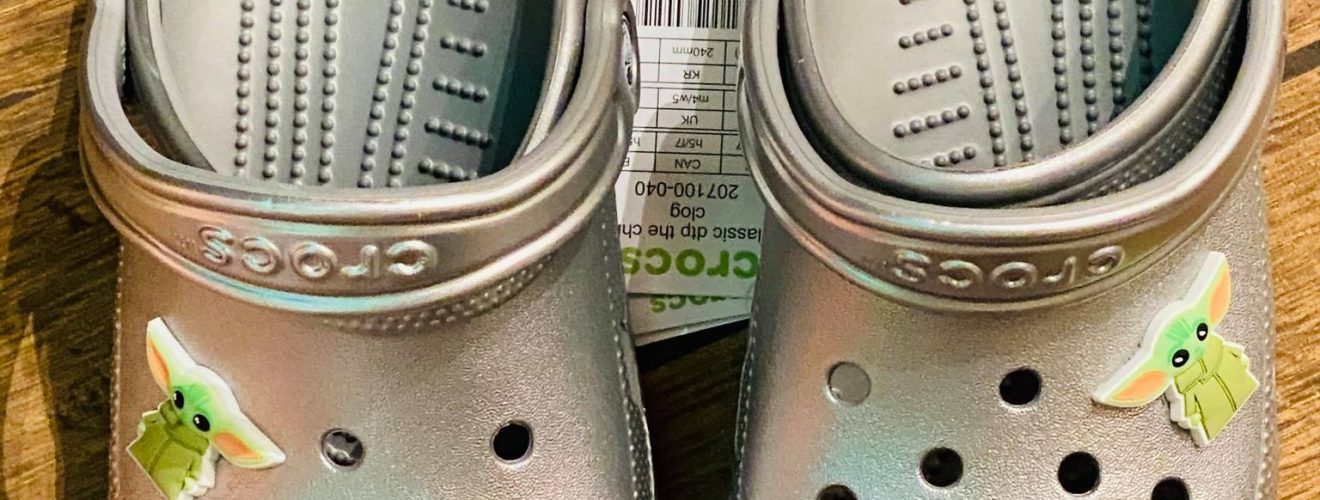 New The Child (AKA Baby Yoda) adults Crocs have been spotted at Disney Springs, and they are absolutely adorable! These Baby Yoda crocs are a metallic grey/brown, with a small Baby Yoda icon on … Continue reading These New Baby Yoda Crocs are the Cutest Shoes in the Galaxy – PHOTOS