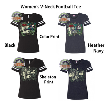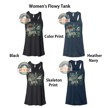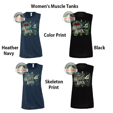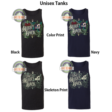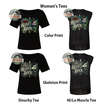 Ignite the Magic clothing company offers a wide variety of Disney Parks and attractions related designs in their vast shirt collection. Their designs are always available in different styles of shirts/tanks as well, allowing you to choose what fits you best. The new “Hurry Back” Haunted Mansion design is no different, and we are here for it!
