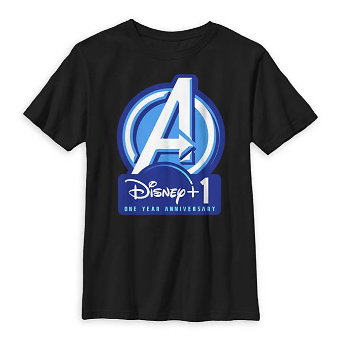 For the Avengers fan in your life. They can watch all of the Avengers films while wearing this Disney Plus Anniversary tee with an Avengers logo on it.