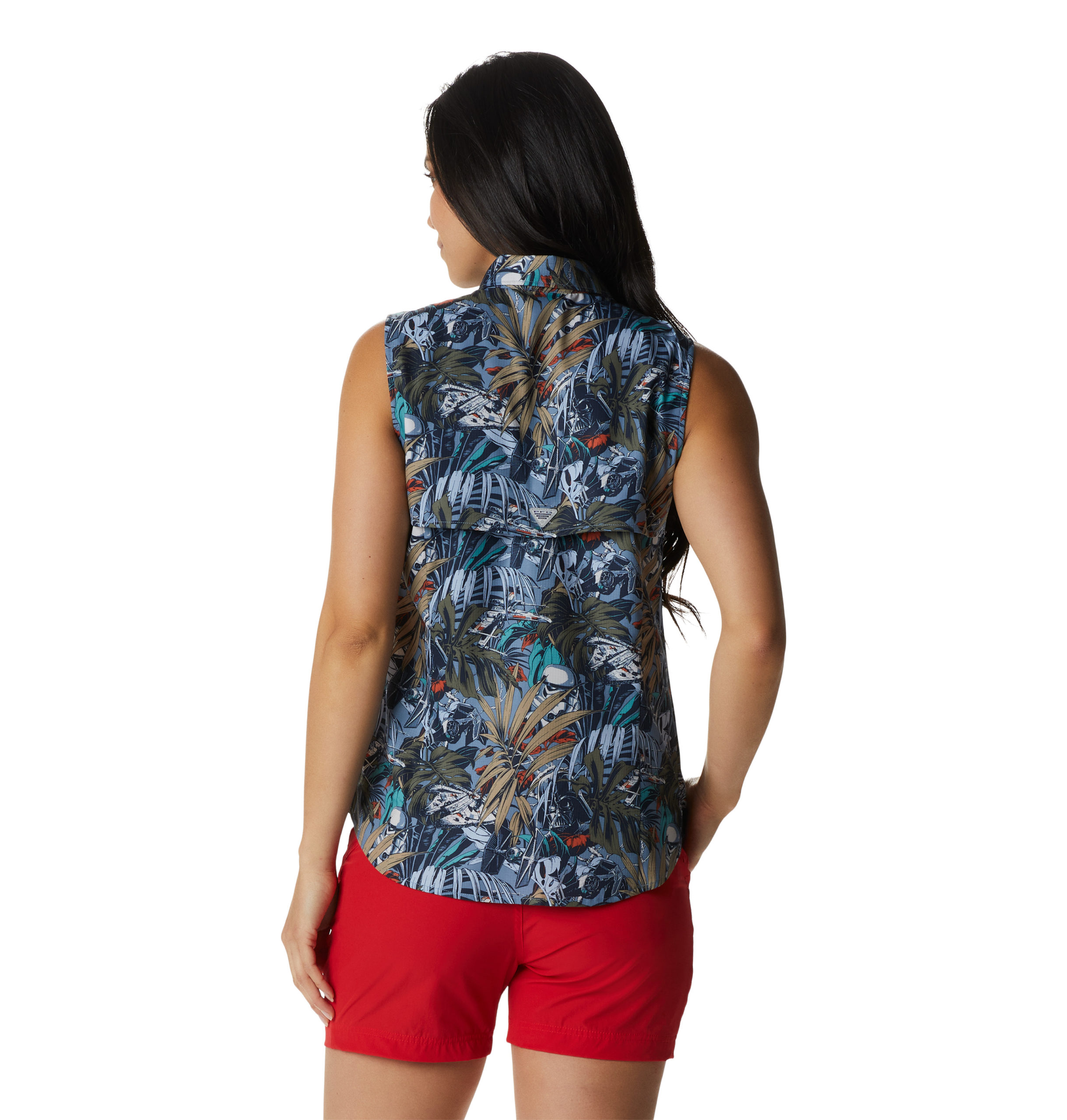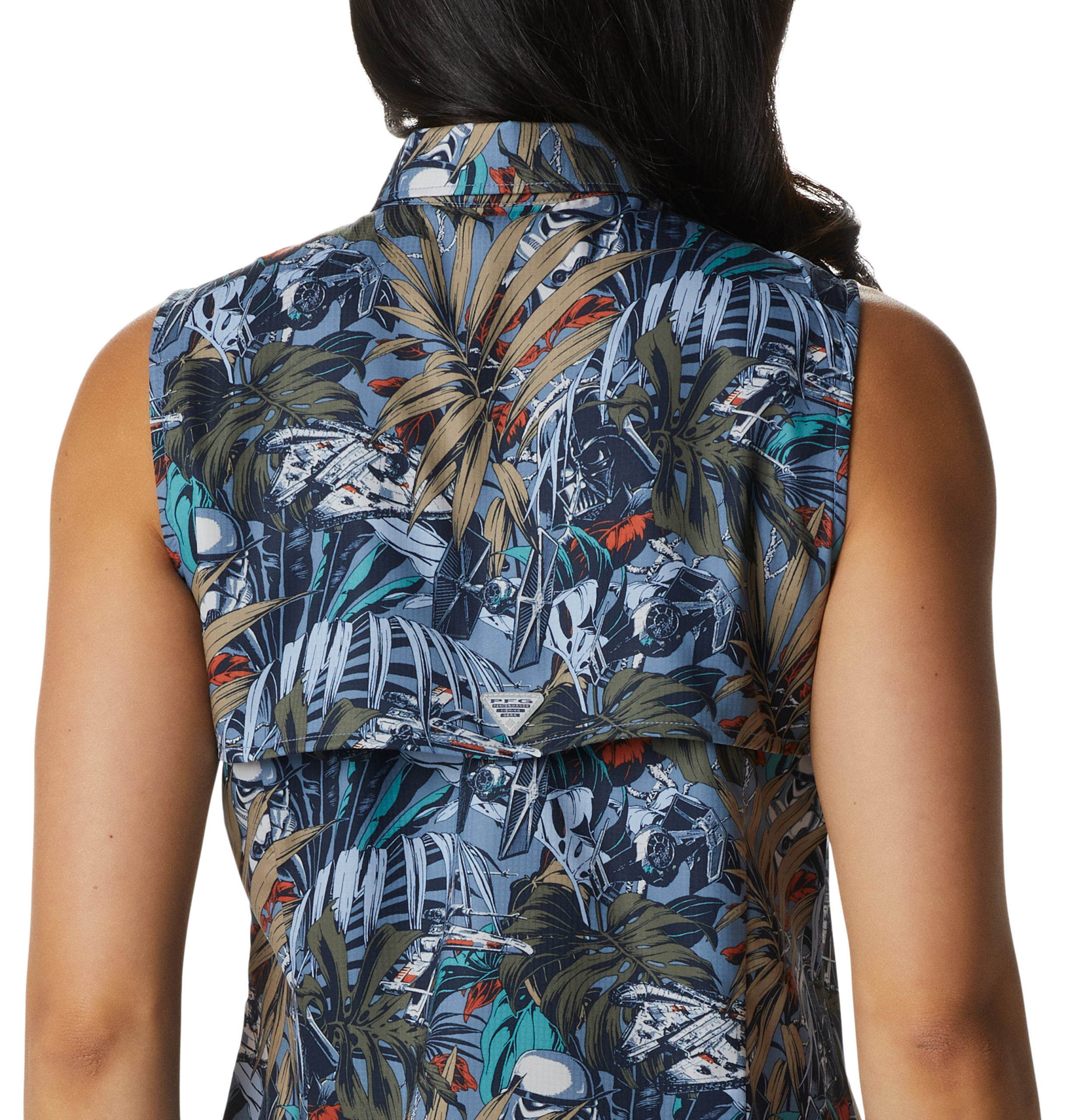 The women’s Outer Rim Cantina print shirt is actually a sleeveless style shirt, give more freedom of movement.
